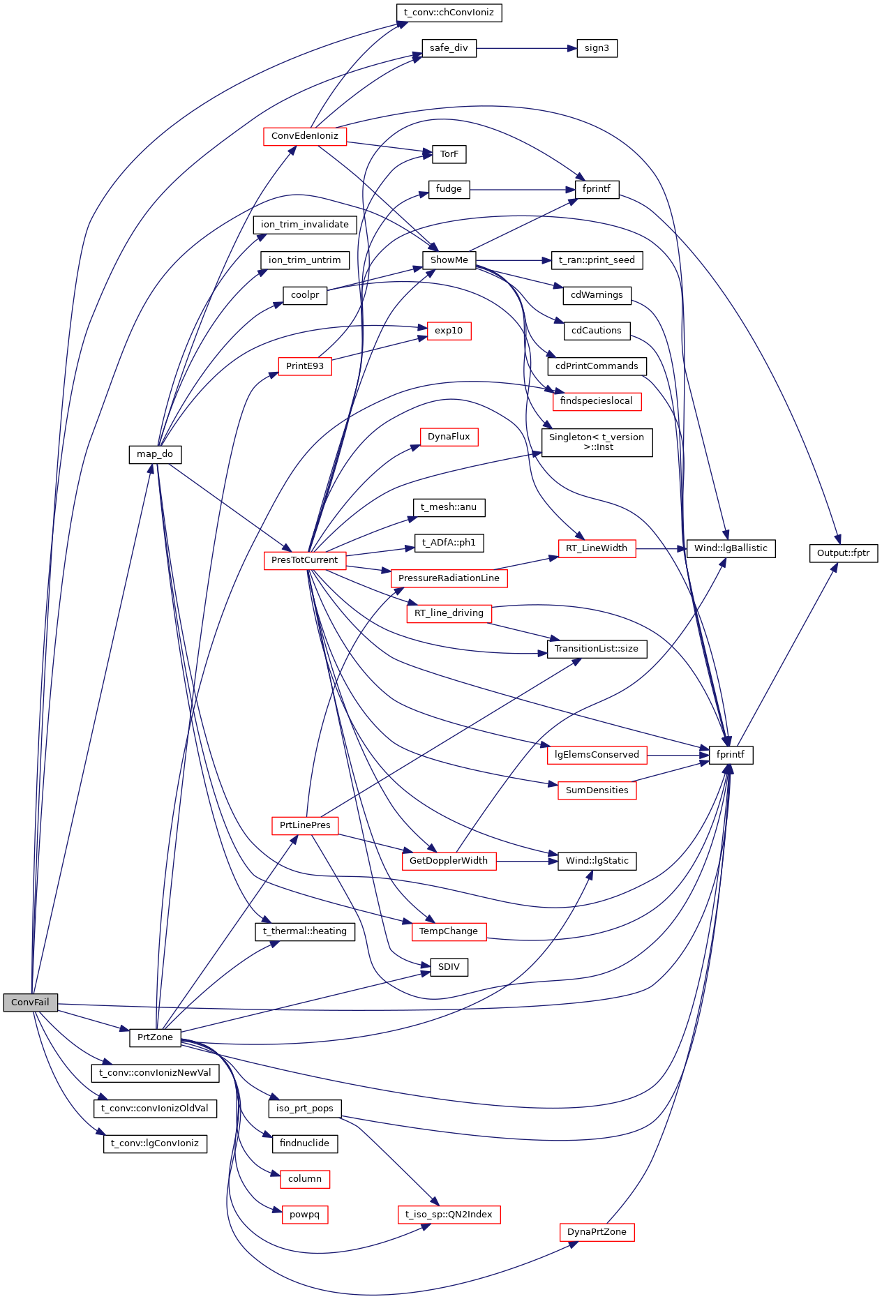 References ASSERT, BIGFLOAT, called, cdEXIT, t_conv::chConvIoniz(), t_dense::chDenseLaw, conv, t_conv::convIonizNewVal(), t_conv::convIonizOldVal(), t_hextra::cryden, t_thermal::ctot, DEBUG_ENTRY, dense, t_dense::eden, t_dense::EdenTrue, EXIT_FAILURE, t_conv::failmx, fnzone, fprintf(), t_dense::gas_phase, hcmap, t_conv::HeatCoolRelErrorAllowed, hextra, t_thermal::htot, t_conv::ifailz, ioQQQ, ipHYDROGEN, iteration, t_conv::lgConvIoniz(), t_conv::lgConvPops, t_conv::lgConvTemp, t_conv::lgMap, t_hcmap::lgMapBeingDone, t_pressure::lgSonicPoint, t_called::lgTalk, t_conv::LimFail, map_do(), MAX2, MIN2, t_conv::nGrainFail, t_conv::nIonFail, t_conv::nNeFail, t_conv::nPopFail, t_conv::nPreFail, t_conv::nTeFail, t_conv::nTotalFailures, nzone, t_pressure::pbeta, phycon, t_pressure::PresGasCurr, t_pressure::PresRamCurr, pressure, t_pressure::PresTotlCurr, t_pressure::PresTotlError, PrtZone(), t_hcmap::RangeMap, safe_div(), ShowMe(), t_phycon::te, and thermal.