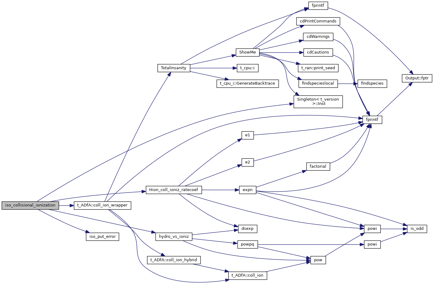References ASSERT, CalcTwoPhotonRates(), conv, dense, ionbal, t_dense::IonHigh, t_dense::IonLow, ipH_LIKE, ipHE_LIKE, ipHYDROGEN, iso_collide(), iso_continuum_lower(), iso_ctrl, iso_error_generation(), iso_ionize_recombine(), iso_photo(), iso_radiative_recomb(), iso_radiative_recomb_effective(), iso_sp, t_isoCTRL::lgContinuumLoweringEnabled, t_dense::lgElmtOn, t_iso_sp::lgErrGenDone, t_isoCTRL::lgInd2nu_On, t_rfield::lgInducProcess, t_isoCTRL::lgRandErrGen, LIMELM, MIN2, NISO, t_conv::nPres2Ioniz, t_conv::nTotalIoniz, nzone, t_ionbal::RateRecomIso, t_ionbal::RateRecomTot, rfield, and t_iso_sp::TwoNu.