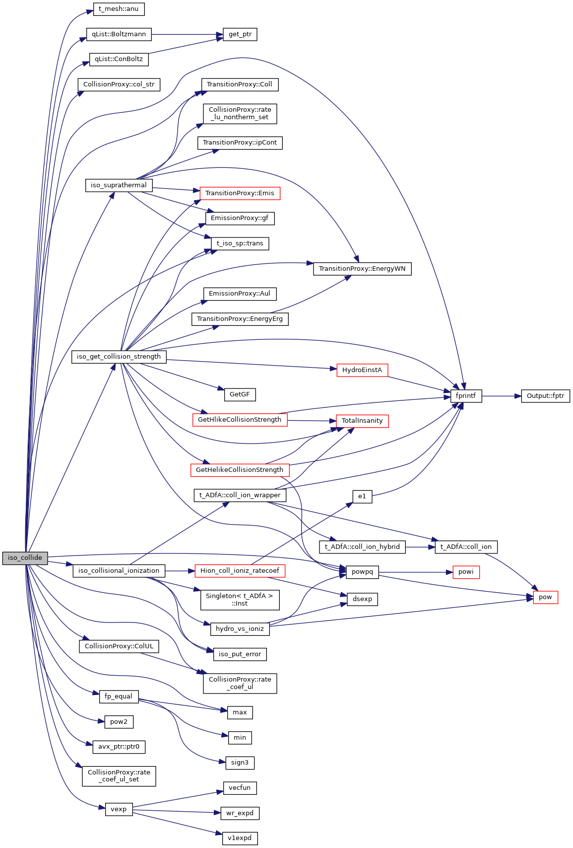 References t_mesh::anu(), ASSERT, t_dense::AtomicWeight, BIGDOUBLE, qList::Boltzmann(), t_isoCTRL::chISO, CollisionProxy::col_str(), TransitionProxy::Coll(), colliders, t_ionbal::CollIonRate_Ground, CollisionProxy::ColUL(), qList::ConBoltz(), conv, DEBUG_ENTRY, dense, t_dense::density_low_limit, t_dense::eden, t_dense::EdenHCorr, t_iso_sp::fb, fp_equal(), fprintf(), Heavy, ionbal, ioQQQ, ipALPHA, IPCOLLIS, ipELECTRON, t_Heavy::ipHeavy, t_trace::ipIsoTrace, ipNCOLLIDER, ipPROTON, iso_collisional_ionization(), iso_ctrl, iso_get_collision_strength(), iso_put_error(), iso_sp, iso_suprathermal(), t_opac::lgCaseB_HummerStorey, t_isoCTRL::lgColl_excite, t_isoCTRL::lgColl_l_mixing, t_isoCTRL::lgCritDensLMix, t_trace::lgHBug, t_trace::lgHeBug, t_trace::lgIsoTraceFull, t_iso_sp::lgPopLTE_OK, t_iso_sp::lgPrtNCrit, t_trace::lgTrace, LIMELM, ColliderList::list, max(), MAX_DENSITY, MIN2, N_, t_iso_sp::n_HighestResolved_max, t_iso_sp::nCollapsed_max, NISO, t_isoCTRL::nLyaLevel, t_conv::nTotalIoniz, t_iso_sp::numLevels_local, t_iso_sp::numLevels_max, opac, phycon, pow2(), powpq(), PrintEfmt, avx_ptr< T, lgBC >::ptr0(), CollisionProxy::rate_coef_ul(), CollisionProxy::rate_coef_ul_set(), rfield, SMALLDOUBLE, t_phycon::sqrte, t_iso_sp::st, t_isoCTRL::stat_ion, t_phycon::te, t_phycon::te32, t_phycon::te_ryd, trace, t_iso_sp::trans(), and vexp().