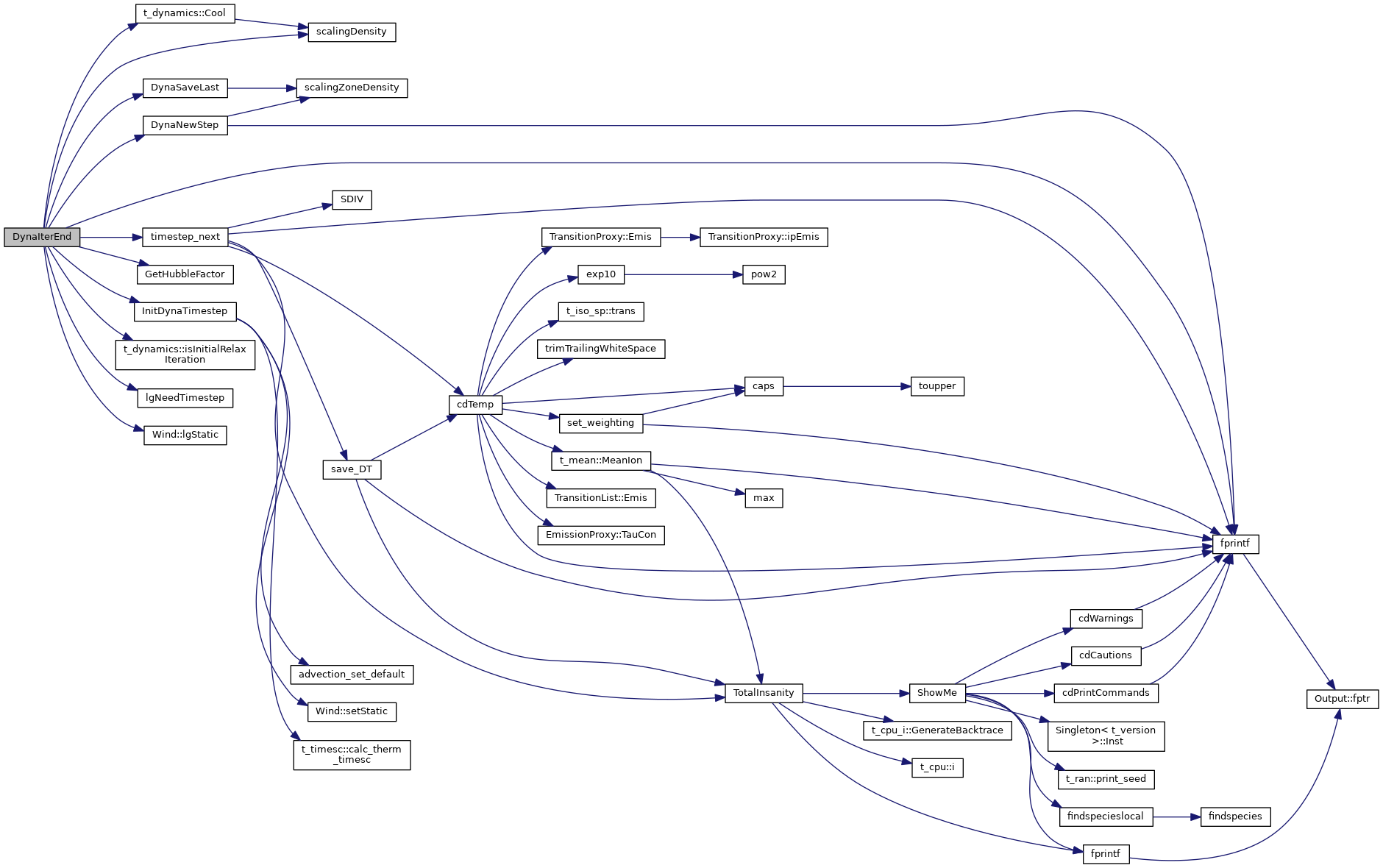 References t_dynamics::AdvecLengthInit, ASSERT, t_thermal::ConstTemp, t_dynamics::Cool(), cosmology, t_thermal::ctot, DEBUG_ENTRY, t_radius::depth, t_dynamics::discretization_error, t_dynamics::DivergePresInteg, t_radius::dr_max_last_iter, Dyn_dr, DynaNewStep(), DynaSaveLast(), t_dynamics::error_scale2, fprintf(), GetHubbleFactor(), InitDynaTimestep(), ioQQQ, iphUpstream, ipUpstream, ipyUpstream, t_dynamics::isInitialRelaxIteration(), t_iterations::iter_alloc, iteration, iterations, t_dynamics::lg_coronal_time_init, t_cosmology::lgDo, lgNeedTimestep(), lgPrintDynamics, t_dynamics::lgRecom, t_radius::lgSdrmaxRel, Wind::lgStatic(), t_dynamics::lgStatic_completed, t_thermal::lgTemperatureConstant, lgtime_dt_specified, lgtime_Recom, t_dynamics::lgTimeDependentStatic, t_dynamics::lgTracePrint, t_dynamics::n_initial_relax, nTime_flux, phycon, t_pressure::PresGasCurr, pressure, radius, t_cosmology::redshift_current, t_cosmology::redshift_step, rfield, scalingDensity(), t_radius::sdrmax, StopCalc, t_iterations::StopThickness, t_phycon::te, t_StopCalc::TempHiStopIteration, t_StopCalc::TempLoStopIteration, thermal, t_rfield::time_continuum_scale, time_dt, time_dt_scale_factor, t_dynamics::time_elapsed, time_elapsed_time, t_dynamics::timestep, t_dynamics::timestep_factor, timestep_next(), t_dynamics::timestep_stop, wind, and Wind::windv0.