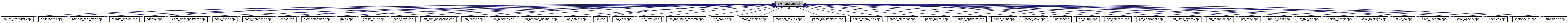 Referenced by abund_starburst(), AbundancesPrt(), AbundancesSet(), cdColm(), cdIonFrac(), cdTemp(), ChargTranPun(), chIonLbl(), ConvBase(), ConvIterCheck(), database_readin(), find_solution(), Parser::GetElem(), Parser::getElement(), GetJenkins09(), GetMetalsDeplete(), GetOptColDen(), GetOptTemp(), GrainChargeTemp(), GrainsInit(), InitSimPostparse(), ion_photo(), ion_recom_calculate(), ion_recomb(), ion_recombAGN(), ion_wrapper(), ipShells(), iso_cool(), iso_init_energies(), iso_level(), iso_prt_pops(), iso_radiative_recomb(), iso_recomb_setup(), lgElemsConserved(), t_mole_global::make_species(), makeChemical(), mie_read_form(), mie_write_form(), mie_write_opc(), parse_save_average(), ParseAbundances(), ParseDatabaseISO(), ParseElement(), ParseMetal(), ParseMonitorResults(), ParseSave(), parsespect(), PrintRates(), prt_smooth_predictions(), prt_trans_opc_debug(), PrtAllTau(), PrtColumns(), PrtComment(), PrtMeanIon(), PrtZone(), radius_next(), read_UTA_lines(), renorm_solution(), SanityCheckBegin(), save_opacity(), SaveDo(), SaveHeat(), SaveLineData(), setIsoNelemFlag(), and spectral_to_chemical().