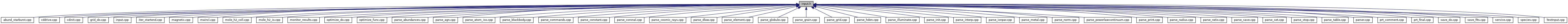 Referenced by abund_starburst(), cdDrive(), cdErrors(), cdInit(), cdMain(), cdPrintCommands(), cdRead(), Parser::getline(), grid_do(), IterRestart(), optimize_do(), optimize_func(), ParseAgn(), ParseBlackbody(), ParseBremsstrahlung(), ParseCommands(), ParseConstant(), ParseCoronal(), ParseCosmicRays(), ParseDarkMatter(), ParseDatabaseISO(), ParseDistance(), ParseDLaw(), ParseEden(), ParseElement(), ParseEnergy(), ParseFill(), ParseFudge(), ParseGlobule(), ParseGrain(), ParseHDEN(), ParseHExtra(), ParseIlluminate(), ParseInitFile(), ParseIntensity(), ParseInterp(), ParseIonPar(), ParseLuminosity(), ParseMagnet(), ParseMetal(), ParseNorm(), ParsePhi(), ParsePowerlawContinuum(), ParseQH(), ParseRadius(), ParseRatio(), ParseSave(), ParseSet(), ParseStop(), ParseTable(), ParseTitle(), ParseTLaw(), ParseTurbulence(), Parser::peekNextCommand(), PrintSpectrum(), PrtComment(), PrtFinal(), SaveLineIntensity(), SaveResults(), ShowMe(), vary_input(), and writeCloudyDetails().