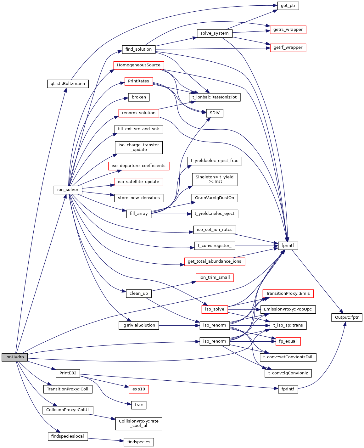References ASSERT, CalcTwoPhotonRates(), conv, dense, ionbal, t_dense::IonHigh, t_dense::IonLow, ipH_LIKE, ipHE_LIKE, ipHYDROGEN, iso_collide(), iso_continuum_lower(), iso_ctrl, iso_error_generation(), iso_ionize_recombine(), iso_photo(), iso_radiative_recomb(), iso_radiative_recomb_effective(), iso_sp, t_isoCTRL::lgContinuumLoweringEnabled, t_dense::lgElmtOn, t_iso_sp::lgErrGenDone, t_isoCTRL::lgInd2nu_On, t_rfield::lgInducProcess, t_isoCTRL::lgRandErrGen, LIMELM, MIN2, NISO, t_conv::nPres2Ioniz, t_conv::nTotalIoniz, nzone, t_ionbal::RateRecomIso, t_ionbal::RateRecomTot, rfield, and t_iso_sp::TwoNu.