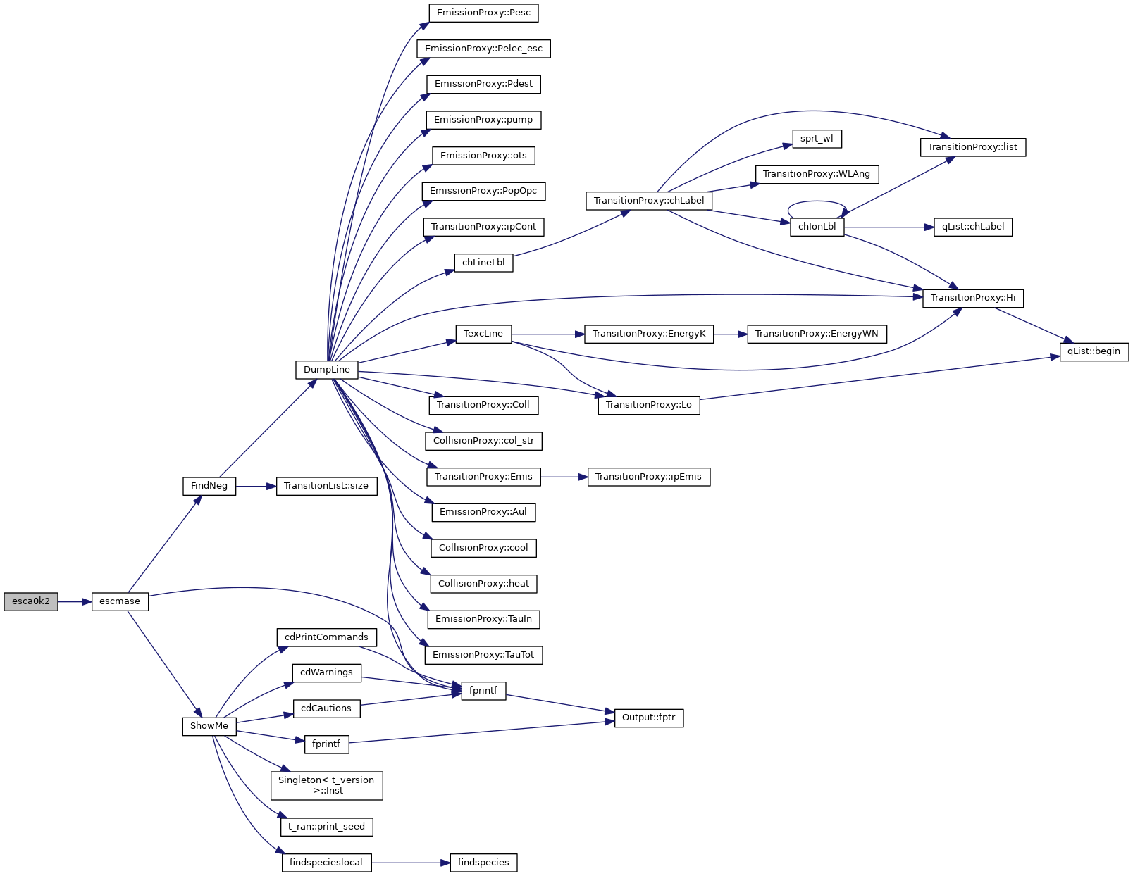 References abund, t_opac::albedo, t_mesh::anu(), ASSERT, cdEXIT, TransitionProxy::chLabel(), conv, DEBUG_ENTRY, dense, DestType::dest, t_dense::eden, TransitionProxy::Emis(), EXIT_FAILURE, fp_equal(), fprintf(), ioQQQ, TransitionProxy::ipCont(), DestType::ipDEST_INCOM, DestType::ipDEST_K2, DestType::ipDEST_LYA, DestType::ipDEST_SIMPL, ipH1s, ipH2p, ipH_LIKE, ipHYDROGEN, iso_sp, t_rt::lgAbsorLineEscape, t_rt::lgElecScatEscape, t_rt::lgElecScatInten, max(), MAX2, EmissionProxy::mult_opac(), NEW_MASE_ESCAPE, NEW_PELEC_ESC, t_rfield::nflux, t_conv::nTotalIoniz, nzone, opac, EmissionProxy::opacity(), t_opac::opacity_abs, EmissionProxy::Pdest(), EmissionProxy::Pelec_esc(), EmissionProxy::Pesc(), EmissionProxy::PopOpc(), POW2, rfield, rt, RT_DestHummer(), RT_line_electron_scatter(), DestType::t, EmissionProxy::TauIn(), and EmissionProxy::TauTot().
