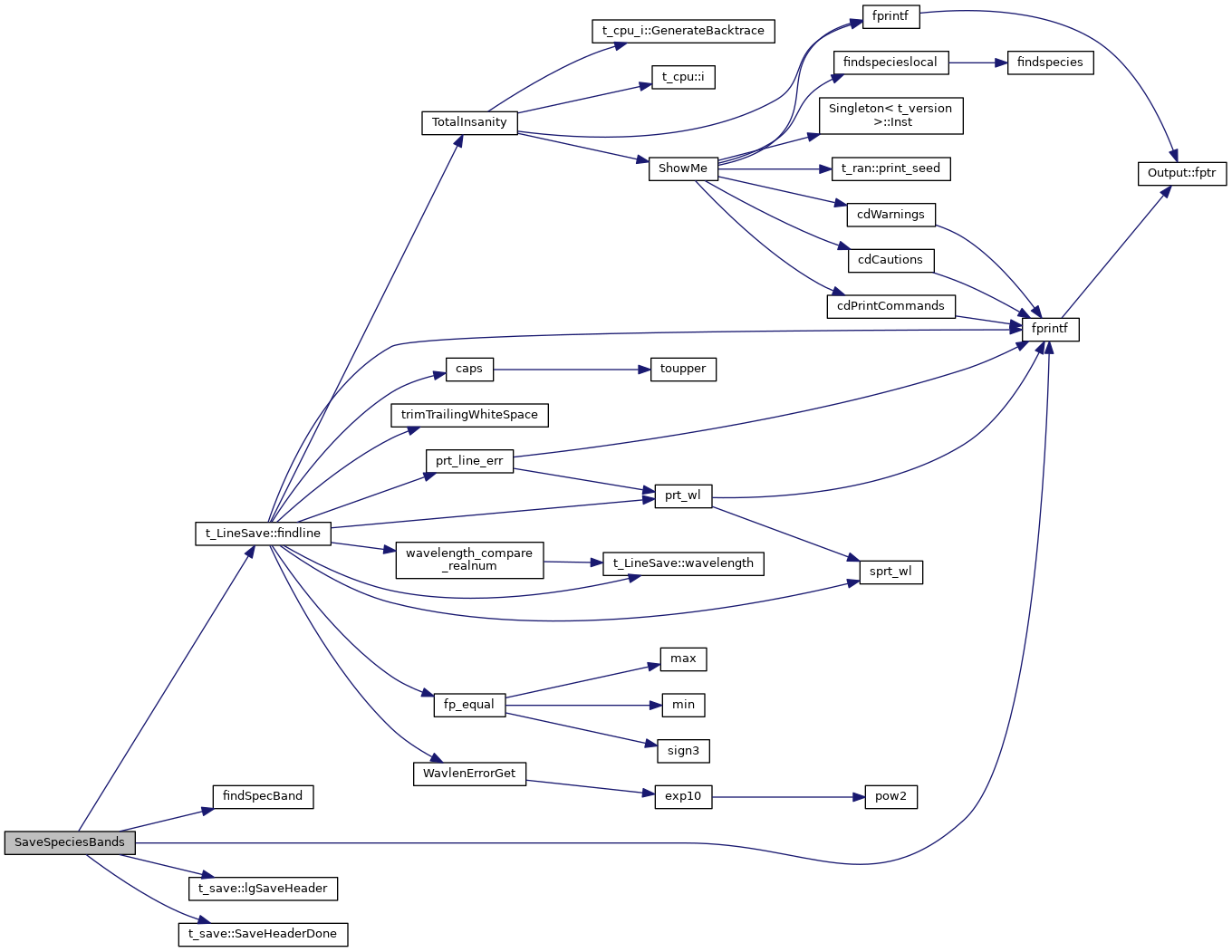 References ASSERT, cdEXIT, t_save::chSaveArgs, t_save::chSaveSpecies, column(), DEBUG_ENTRY, density(), depart(), energy(), EXIT_FAILURE, fprintf(), ioQQQ, ipPun, levels(), molezone::levels, t_save::lgSaveHeader(), t_mole_global::list, matchGeneric(), MAX2, mole, mole_global, NULL, null_molezone, save, t_save::SaveHeaderDone(), SaveSpeciesHeader(), SaveSpeciesLines(), SaveSpeciesOne(), qList::size(), t_mole_local::species, and TotalInsanity().