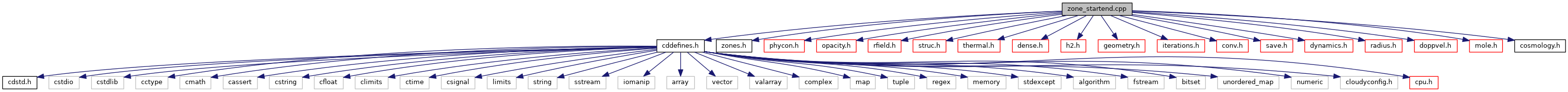 #include "cddefines.h"#include "zones.h"#include "phycon.h"#include "opacity.h"#include "rfield.h"#include "struc.h"#include "thermal.h"#include "dense.h"#include "h2.h"#include "geometry.h"#include "iterations.h"#include "conv.h"#include "save.h"#include "dynamics.h"#include "radius.h"#include "doppvel.h"#include "mole.h"#include "cosmology.h"